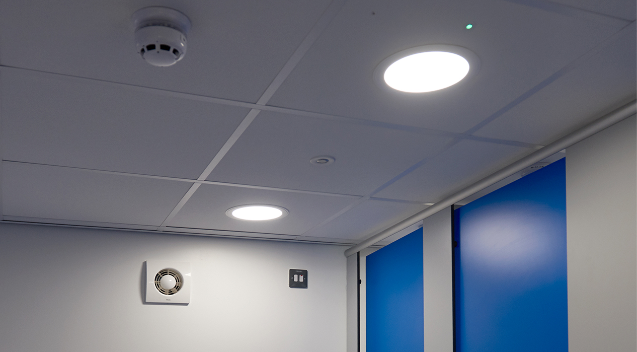 The panels are quick and easy to install into exposed grid ceilings, with remote ‘plug and play’ drivers and are available in standard fixed output, dimmable, and emergency options with no maintenance or re-lamping requirements over their lifetime. This eliminates areas not being available for use due to lamp maintenance, as well as benefitting the environment in terms of energy efficiency and lamp disposal. Circular LuxPanels were installed in corridors and toilets. Featuring slim framed panels, Circular LuxPanels offer excellent luminous uniformity and can be supplied as standard, with emergency packs or with dimmable remote drivers in 240, 180, 150, and 120mm sizes, further demonstrating the diversity of the LuxPanel range.