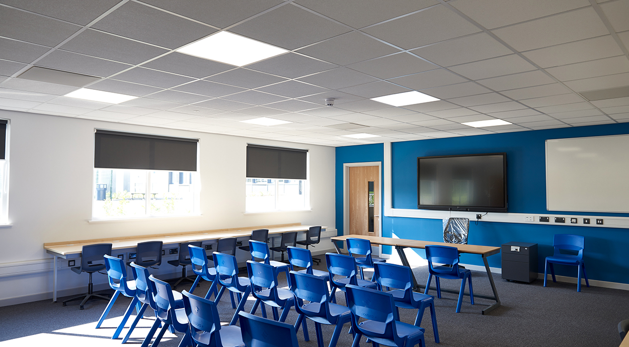 LuxPanel was used for a variety of classroom applications, providing a cost-effective and energy-saving lighting solution. Glare control and adequate illuminance on the vertical combined with good uniformity needs to be considered when lighting schools, in particular, in rooms that are multi-functional. High-efficiency LuxPanels from Luceco provide the ideal solution and have a completely frameless appearance in the ceiling plane and a market-leading efficacy of 152 Llm/cW.
