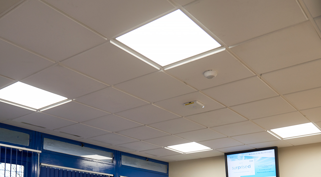 Further circulation areas to benefit from the LED lighting refurbishment included corridors and consultancy rooms lit with the Academy luminaire. Academy is as an ideal replacement for linear fluorescent fittings and as with LuxPanel, offers over 50,000 hours of maintenance-free operation, with no re-lamping requirement so is the perfect replacement for traditional fluorescent fittings.