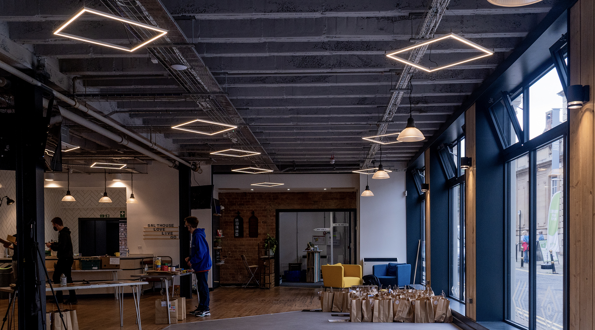After extensive refurbishment, The Salt House, a former Co-Op Hall, has now become the new home for worshipers of the Church of St Swithin’s, and Axis Mechanical & Electrical Consulting Engineers based in Nottingham specified luminaires from Luceco.
