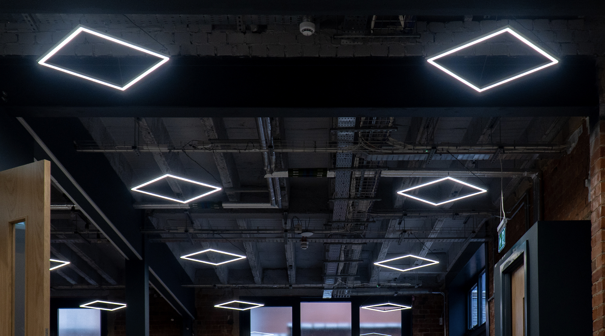Dimmable 3000K suspended LuxFrame luminaires were used in the main area. LuxFrame is a minimalist LED luminaire designed for ceiling grid applications or suspended as a pendant luminaire as at Salt House, enabling the creation of imaginative and contemporary lighting designs.