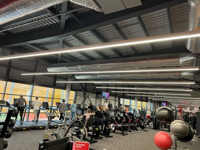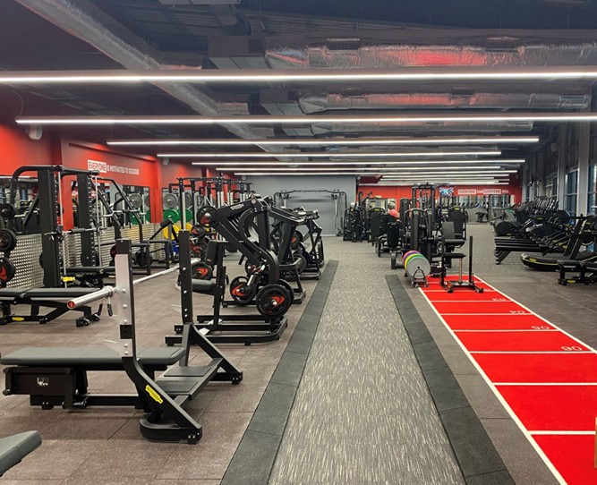 White Oak Leisure Centre features a 100-station gym, with Techno-gym equipment. The gym was lit with suspended rows of Contour luminaires to provide contemporary, practical energy-saving lighting which enhanced the interior design of the space. Contour provides individual or continuous runs of illumination, as used at White Oak Leisure Centre, making it suitable for many commercial environments. The LED lighting system consists of connectable modules with integrated drivers with quick electrical connectors for ease of installation and offers a 5 – 7 year extended warranty with over 100,000 hours operational life.