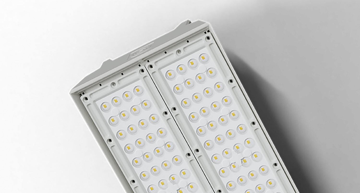 Narrow optic for optimised and balanced lighting distribution for high ceiling environments. The high ceiling optic is the solution for narrow areas and is best suited to ceilings over 18 metres from the ground. It prioritises the concentration of light in narrower areas to allow for the least amount of light leakage from top to bottom.