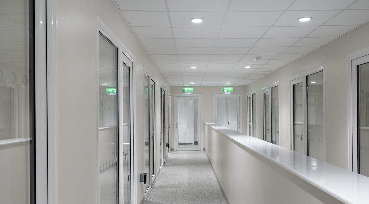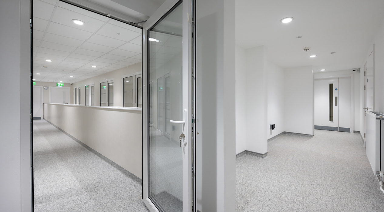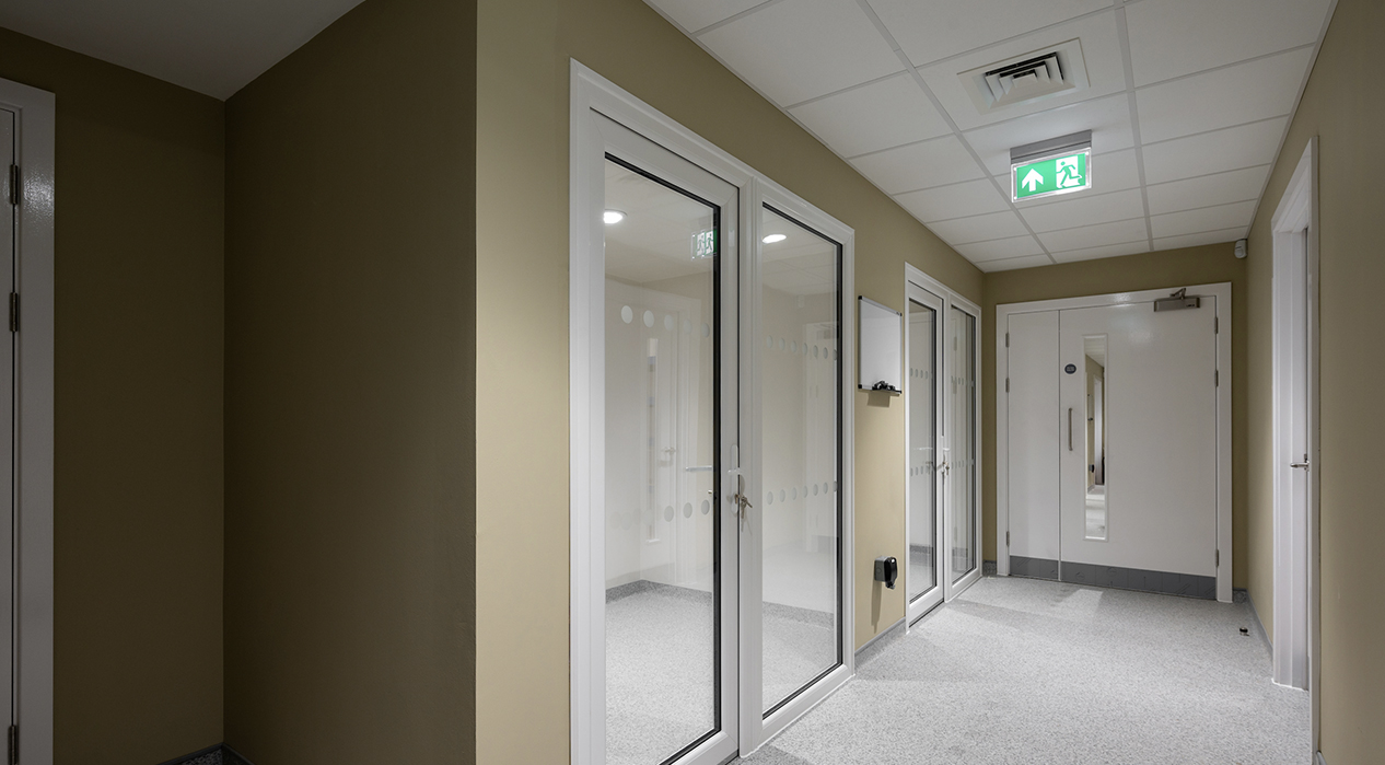Acting as a subcontractor to Principal Contractor Scotwood Interiors, Electrical Solutions (Scotland) Ltd located in Rutherglen completed the lighting installation using modular LuxPanels, surface mounted Sierra bulkheads, linear IP65 rated Climate fittings and recessed Carbon and Platinum Mini downlighters with IP65 diffusers. The installation included recessed ceiling day and night PIR motion sensors and presence / absence dimming detection to assist with the energy efficiency of the building and for the comfort of the occupants. The recessed mounted switching DALI PIRs also offered scene setting which is simply programmed with a handheld remote control. The addition of lighting controls to an installation ensures considerable energy costs savings as well as a straightforward method of reducing an organisation’s carbon footprint.