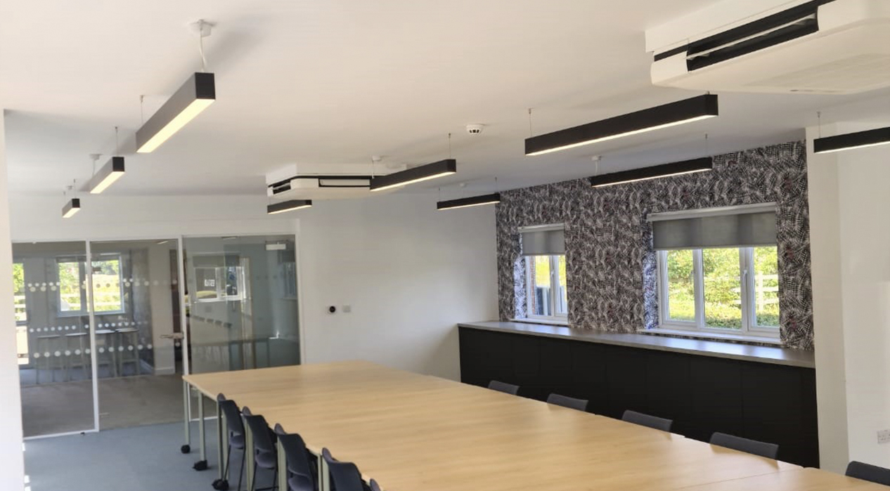 Luceco’s Contour LED luminaire was installed to provide contemporary energy saving lighting which enhanced the architectural features of the interior design, the body of the luminaire in Matt Black. Contour provides individual or continuous runs of illumination suitable for many commercial environments and can be surface mounted, suspended as at Childbase, or recessed. The LED lighting system consists of connectable modules with integrated drivers with quick electrical connectors for ease of installation and offers a 5 – 7 year extended warranty with over 100,000 hours operational life. With low ceilings throughout the interior, Luceco utilised the microprism diffusers to further lower the glare in the space and make it suitable for office applications in accordance with British Standards.