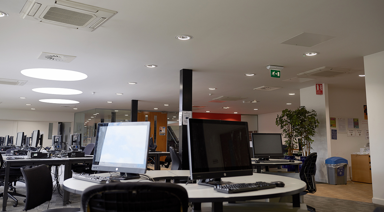 Based in the North of Edinburgh, the Granton Campus is a modern facility housing the ‘Learning Street’, provide students with study spaces and the most up-to-date technology available. High-efficiency LuxPanels were also used here along with the Academy luminaire. Designed for surface mounting in offices and educational environments and providing 50,000 hours of maintenance-free operation, Academy is as an ideal replacement for linear fluorescent fittings.