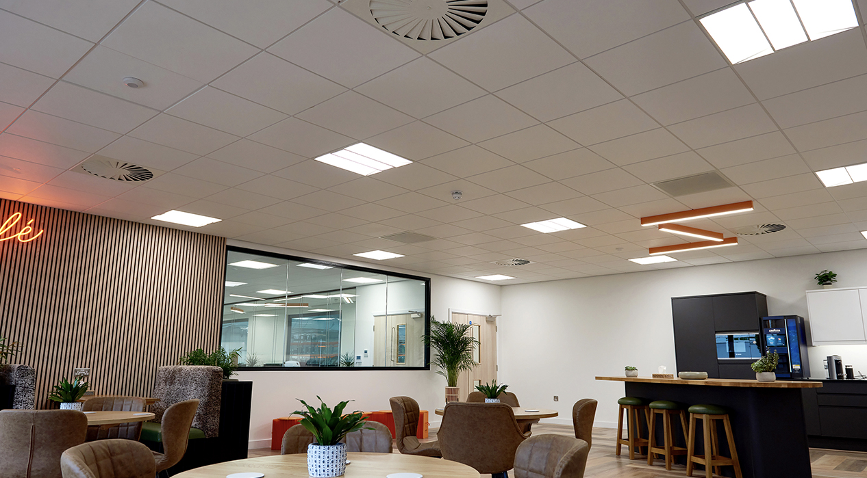 Sigma, a stylish, installer friendly, Direct / Indirect recessed luminaire for low glare applications designed to assist with LG7 compliant settings was also installed. Backlit LED technology and a central Tp(a) microprism optic ensures suitability for office environments offering UGR 19 compliance and less than 3,000 cdm2 at 65°. As well as offering an efficacy of 130 Llm/cW and excellent photometric performance, Sigma, along with Contour, delivers over 100,000 hours of maintenance free, operational life.