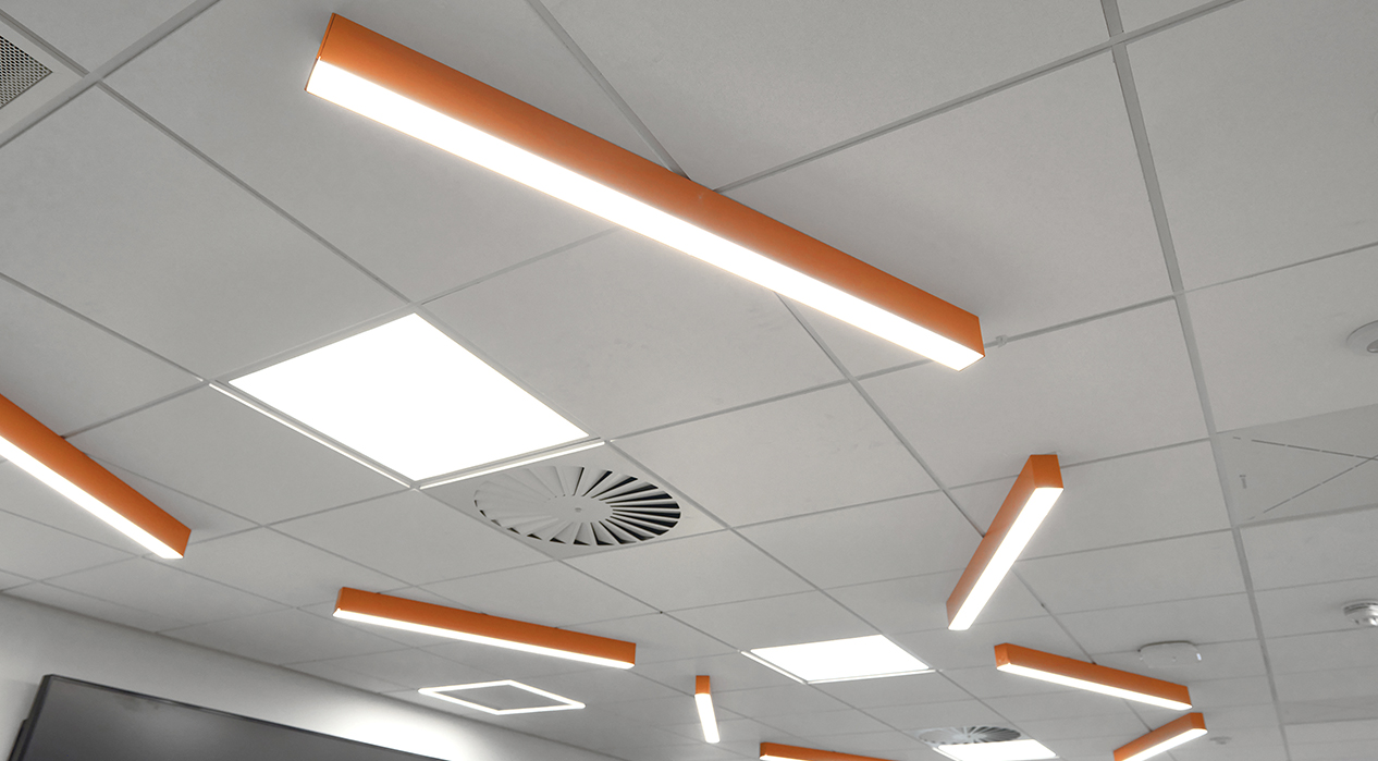 Electrical engineers and consultants Goodwin & Price located in the West Midlands, installed linear Contour painted in RAL2011 – orange along with recessed Sigma and LuxFrame luminaires to enhance the lit environment in the conference and communal areas, corridors, and office spaces. A number of the fittings were installed with Platform wireless lighting controls, providing further energy saving benefits.