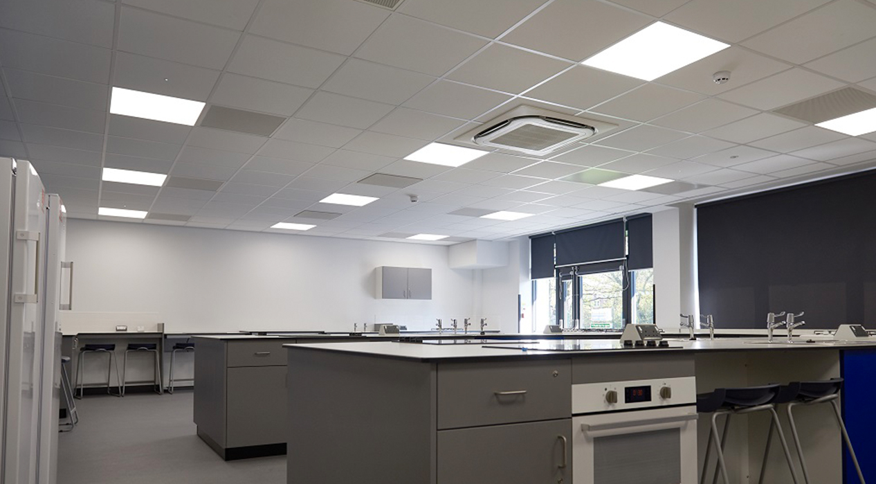 LuxPanel was used for a variety of classroom applications, providing a cost-effective and energy-saving lighting solution. Glare control and adequate illuminance on the vertical combined with good uniformity needs to be considered when lighting schools, in particular, in rooms that are multi-functional. High-efficiency LuxPanels from Luceco provide the ideal solution and have a completely frameless appearance in the ceiling plane and a market-leading efficacy of 152 Llm/cW.