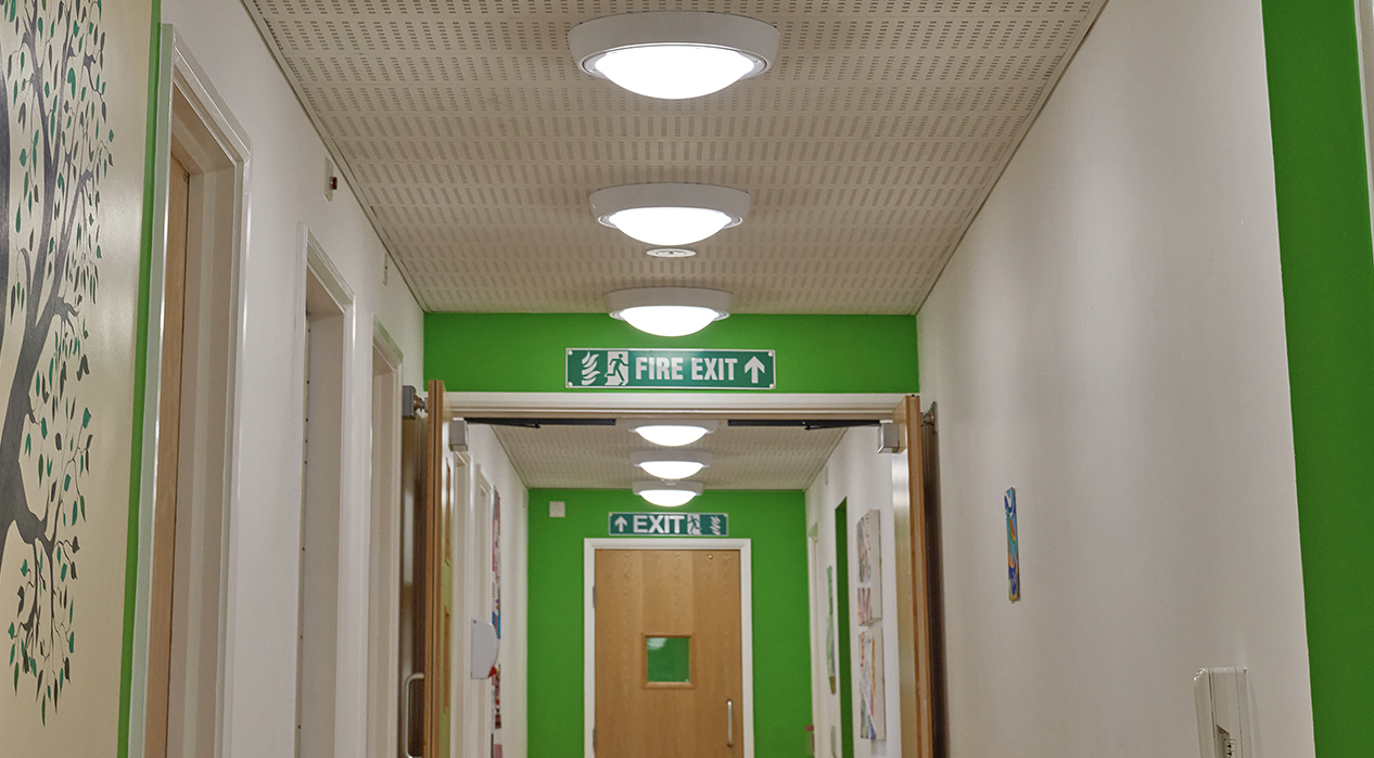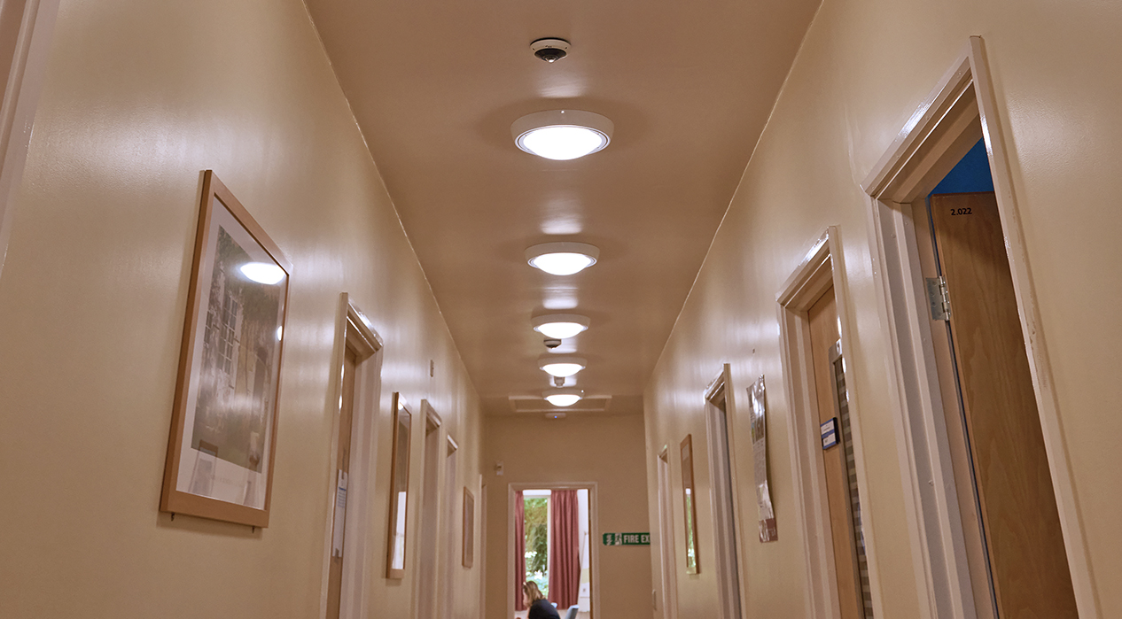 Anti-ligature Atlas bulkheads were installed throughout the hospital, particularly in corridors, bedrooms, and recreation spaces. Anti-ligature luminaires prevent vulnerable people from accidentally or intentionally self-harming. They are designed with reduced apertures between the diffuser and body of the fitting with minimal protruding or moving elements and rounded peripheries to prevent attachment points. Anti-ligature Atlas is ideal for personal spaces such as bedrooms or bathrooms offering dimmable, emergency, and self-test variations, and being wall or ceiling mounted with flush anti tamper screws ensuring only engineer access to the luminaire.
