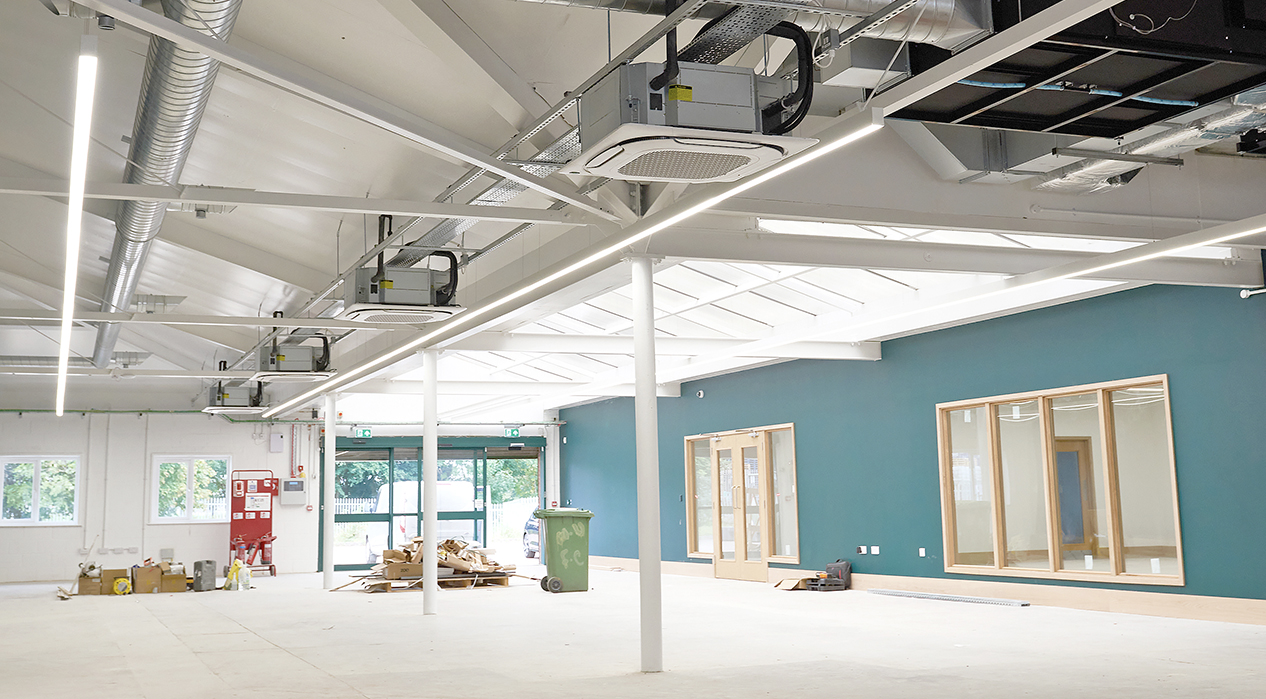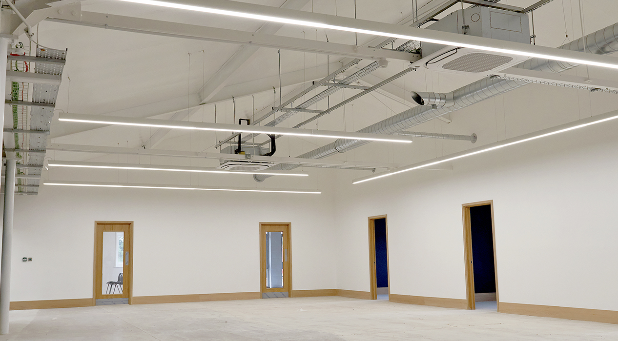 Working with Adi Group, Luceco created a sustainable LED lighting solution that included its Contour luminaires, Platinum Pendants and Darklights, and Ceres high bays.