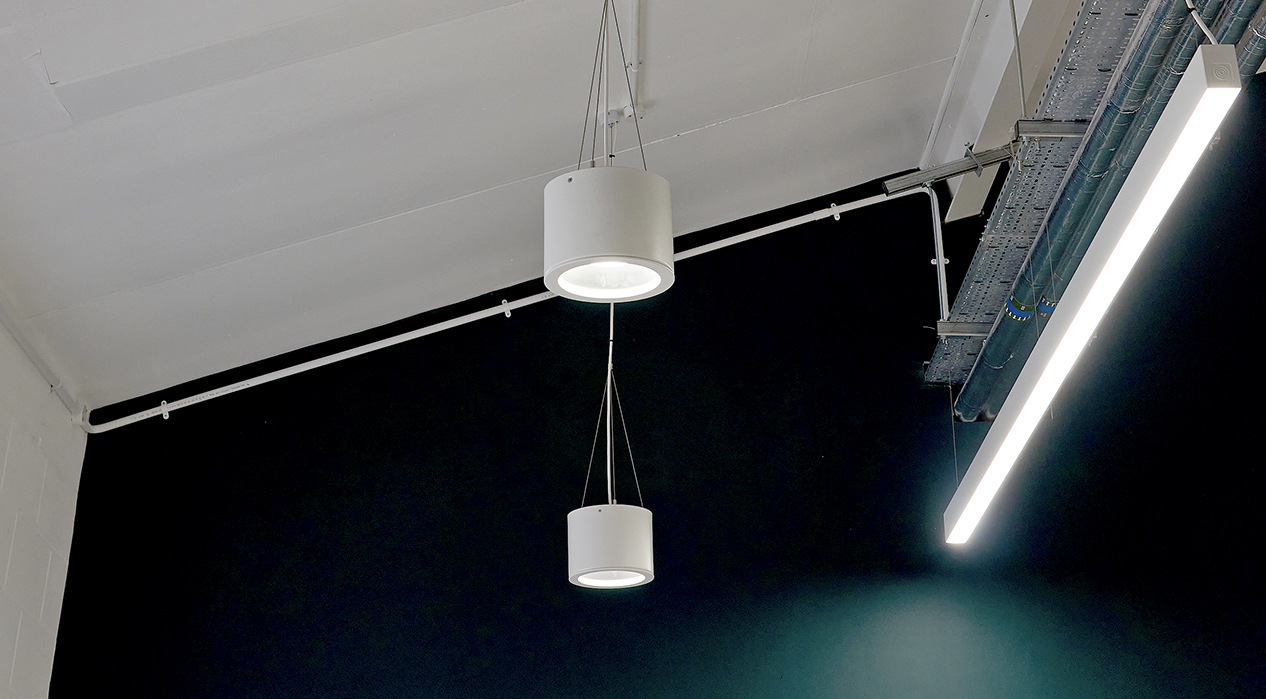 Platinum Pendants and Darklights were used to accompany the suspended contour luminaires, offering a recessed high performance low glare downlight with unique swing tab design that allows for quick and easy installation.