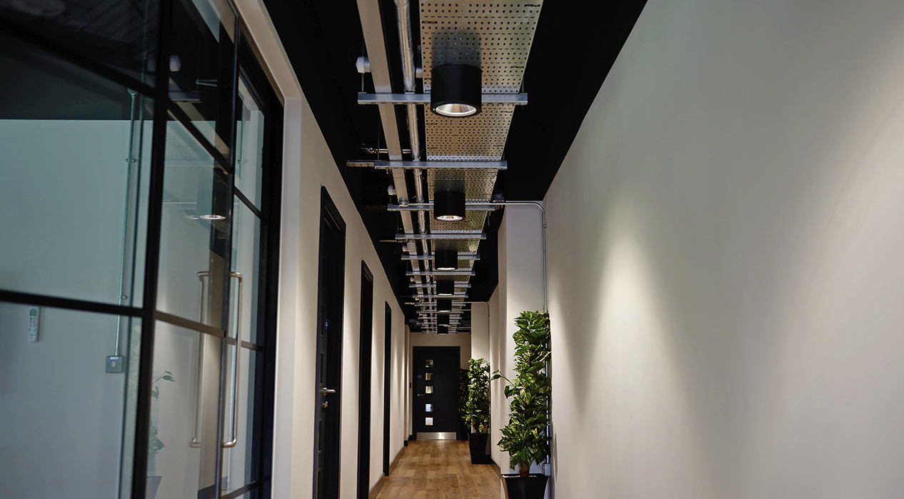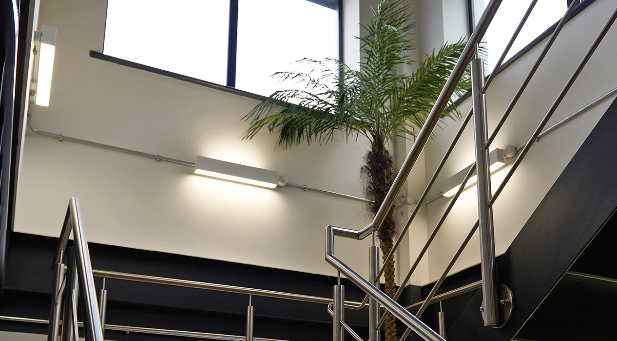 Circulation areas were illuminated with a range of luminaires including Celeste, a circular decorative bulkhead style fitting, with a direct/indirect light distribution offering up to 100,000 hours of working life, and Contour Wall was installed in stairwells. The Luceco Contour Wall series extends the Contour linear lighting family's versatility by including a wall-mounted luminaire with 70% downlight and 30% upward wall-washing effect. The Opal and Microprism optical options meet many commercial requirements along with an efficacy of up to 124Llm/cW.