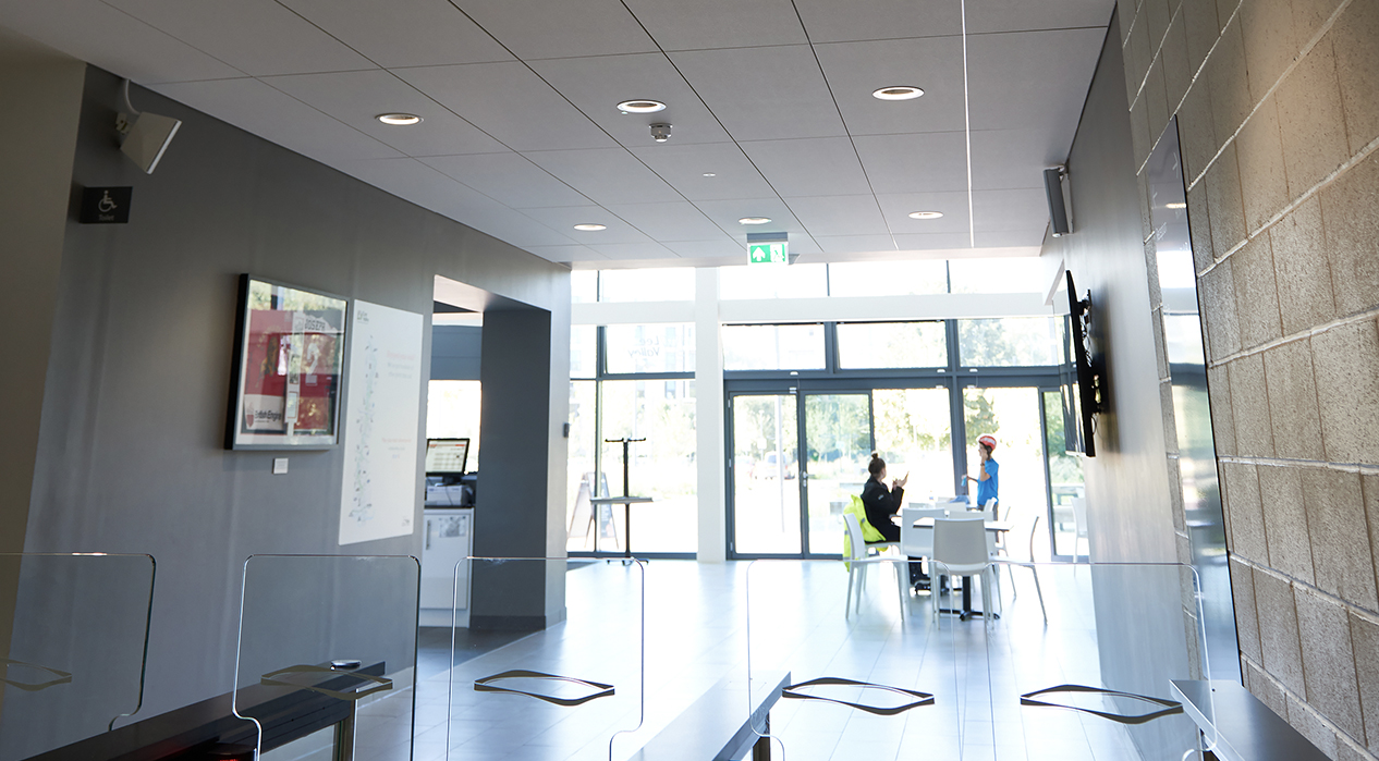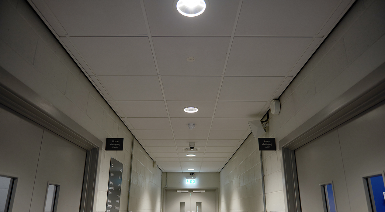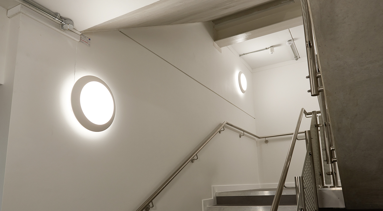 The venue’s auditoriums are illuminated with linear LuxPack, benefitting from quick slide release tabs for fast and easy installation of the plug and play hinged LED diffuser and the stairs lit with Celeste, a stylish yet robust bulkhead luminaire providing a backlit halo effect which are ideal for stairwells and corridors.