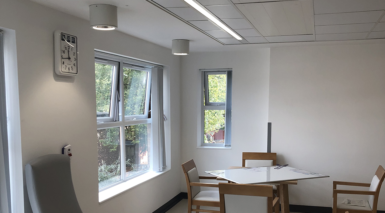 Recessed Contour was used in the Day Room and Suspended Contour on the wards. Seamless runs of energy saving cost-effective LED lighting can be created with Contour with the added benefit of 100,000 hours maintenance-free operational life.