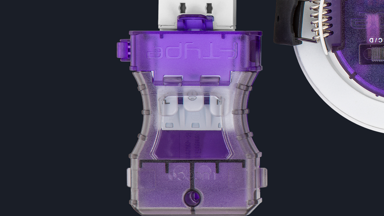 Representing the pinnacle of downlight technology today - specifically developed to streamline and help first-second fix installations, offering the very latest innovations for safety, ease of installation and testing compliance. Combining premium features, including wide 60ยบ baffled back lens for reduced glare, with new innovative developments, from our QuickView window making it easier to inspect cables after locking lid shut, to our 500V VDE certified connection block, allowing installers to save time when 500V testing full installations.