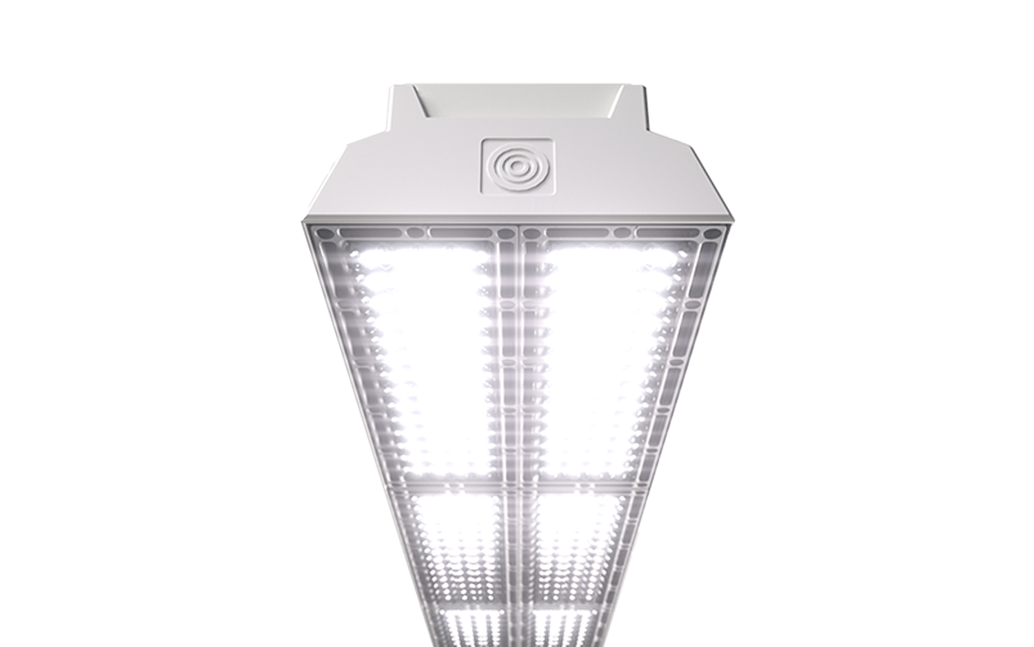 Narrow optic for optimised and balanced lighting distribution for high ceiling environments. The high ceiling optic is the solution for narrow areas and is best suited to ceilings over 18 metres from the ground. It prioritises the concentration of light in narrower areas to allow for the least amount of light leakage from top to bottom.